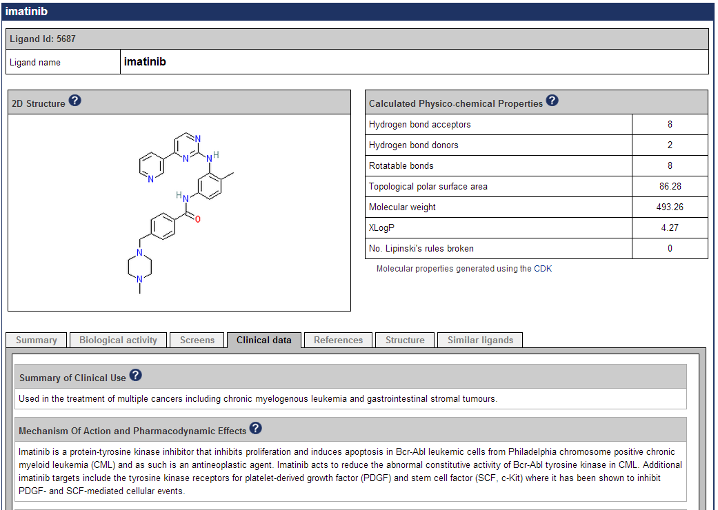 - High specificity call-outs from ligand pages to PubMed clinical trial reports. N.B. the use of call outs for users offers an instant update from PubMed as opposed to a static link.